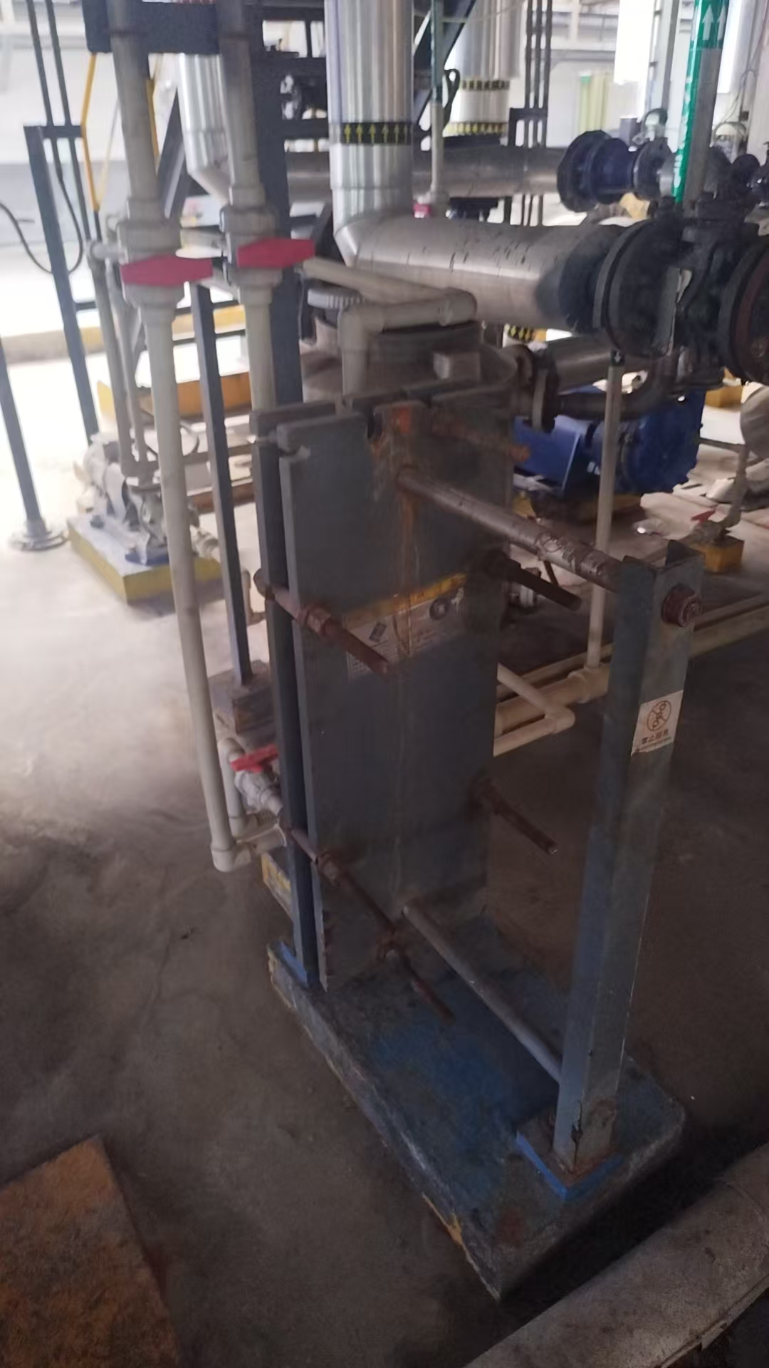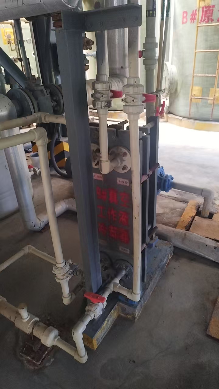 2.改造技術(shù)方案中:增加UPVC管道、DN80長度增加80米、增加DN65管道130米、DN40管道80米、DN50管道70米(管道均由采購人提供,供應(yīng)商負(fù)責(zé)安裝);氟化物儲(chǔ)罐底部增加泵(離心泵型號(hào):50FSB(L)-15-25/3kW-2 ,流量≥15m3/h,揚(yáng)程≥25米,功率3kW-2 ,380V;增加一組波紋板式換熱器(蒸餾水冷卻器E104B/E204B,HX100A-1,材質(zhì):碳鋼,設(shè)計(jì)溫度:150℃,設(shè)計(jì)壓力:1.0MPa(G),換熱面積:10㎡,換熱板厚度:0.6mm,介質(zhì):循環(huán)水)。泵和換熱器由供應(yīng)商提供并負(fù)責(zé)安裝。